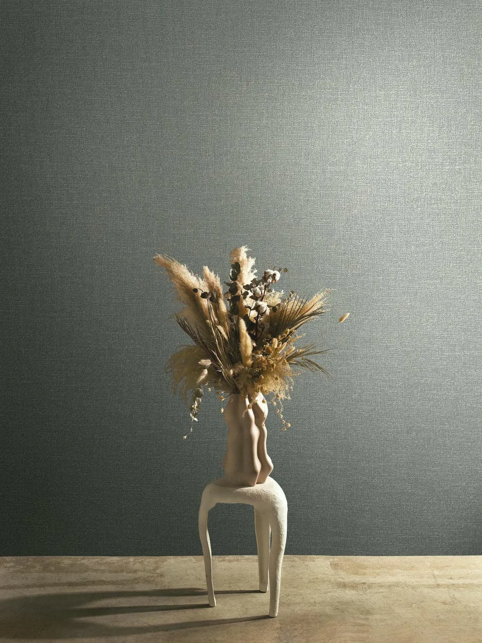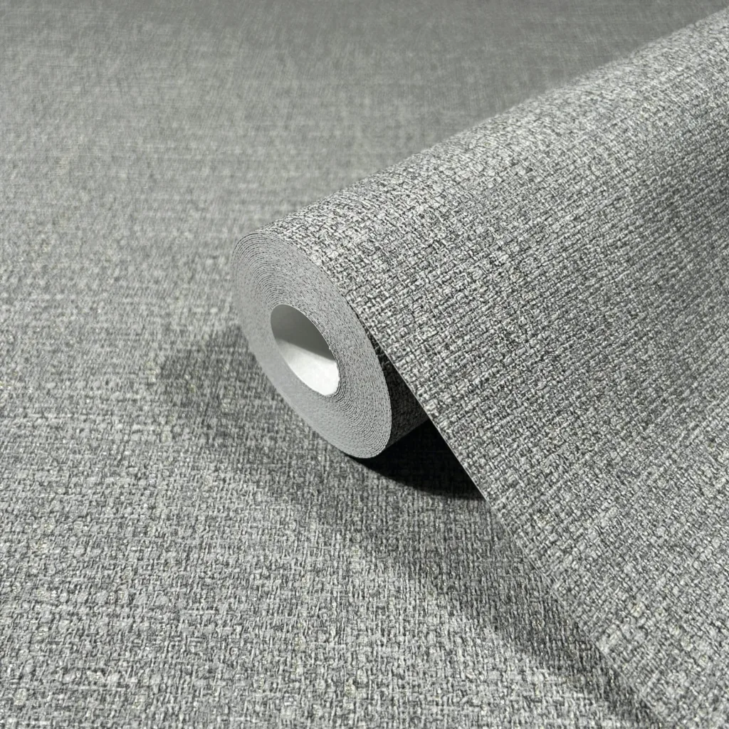 Diese Tapete überzeugt durch ihre authentische Textilstruktur, die an feines Leinen oder grob gewebten Stoff erinnert. Die engmaschige, leicht erhabene Oberfläche in dezentem Silbergrau verleiht dem Raum eine warme, wohnliche Ausstrahlung mit eleganter Zurückhaltung – perfekt für moderne, ruhige Raumkonzepte mit einem Hauch von Natürlichkeit.