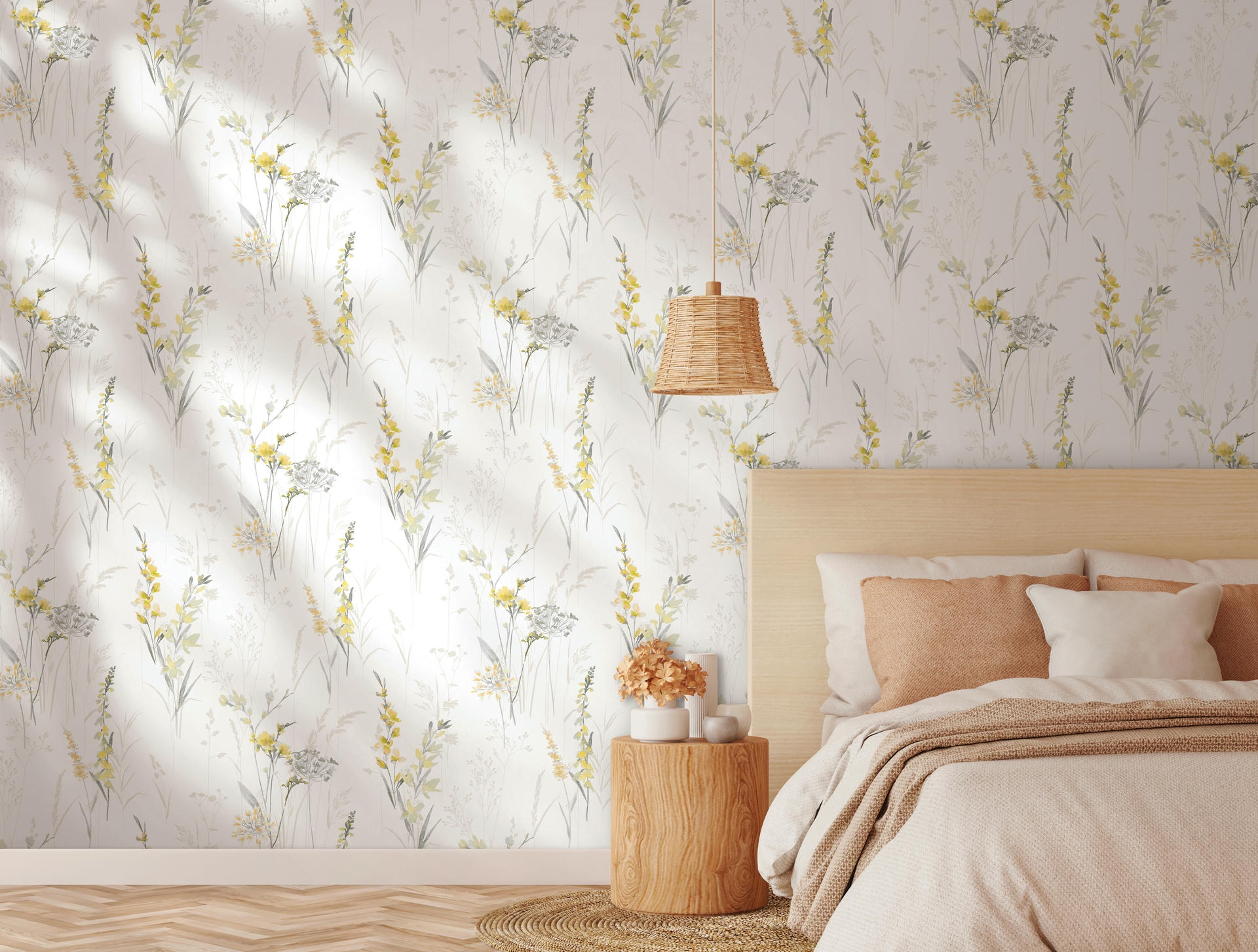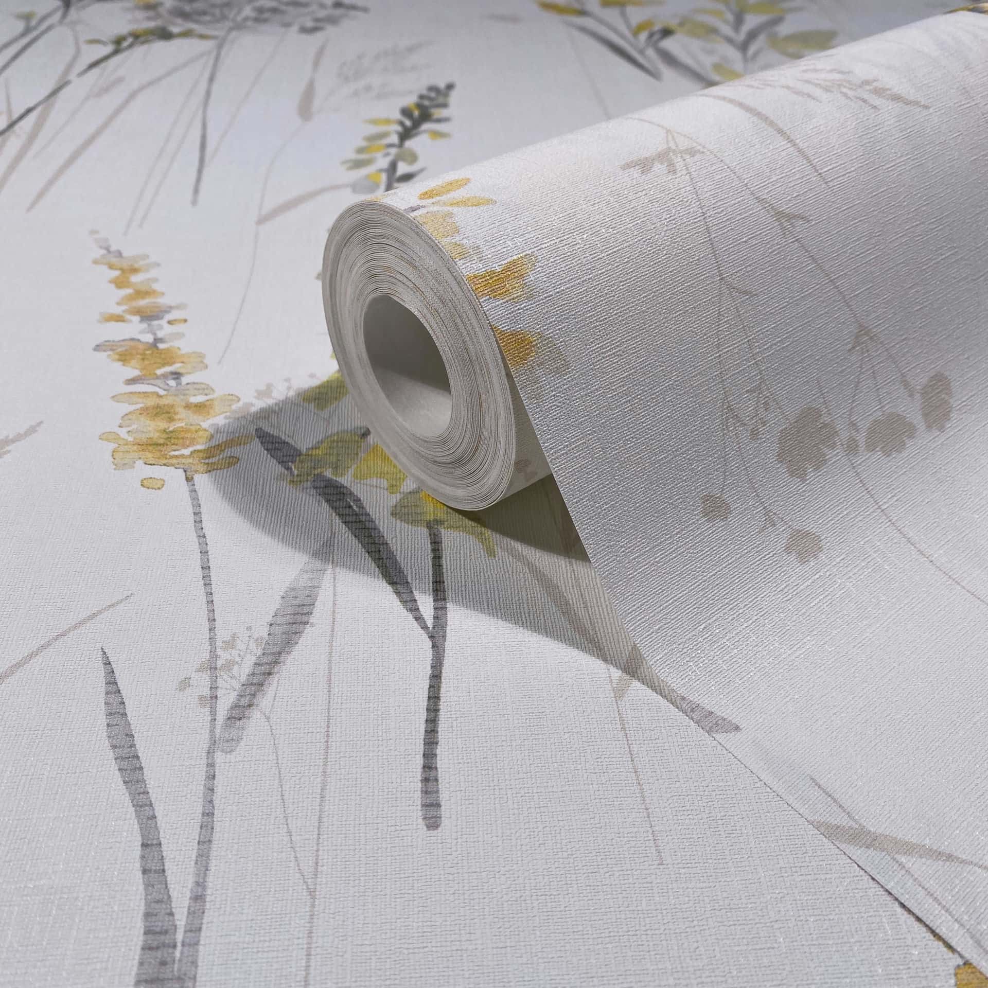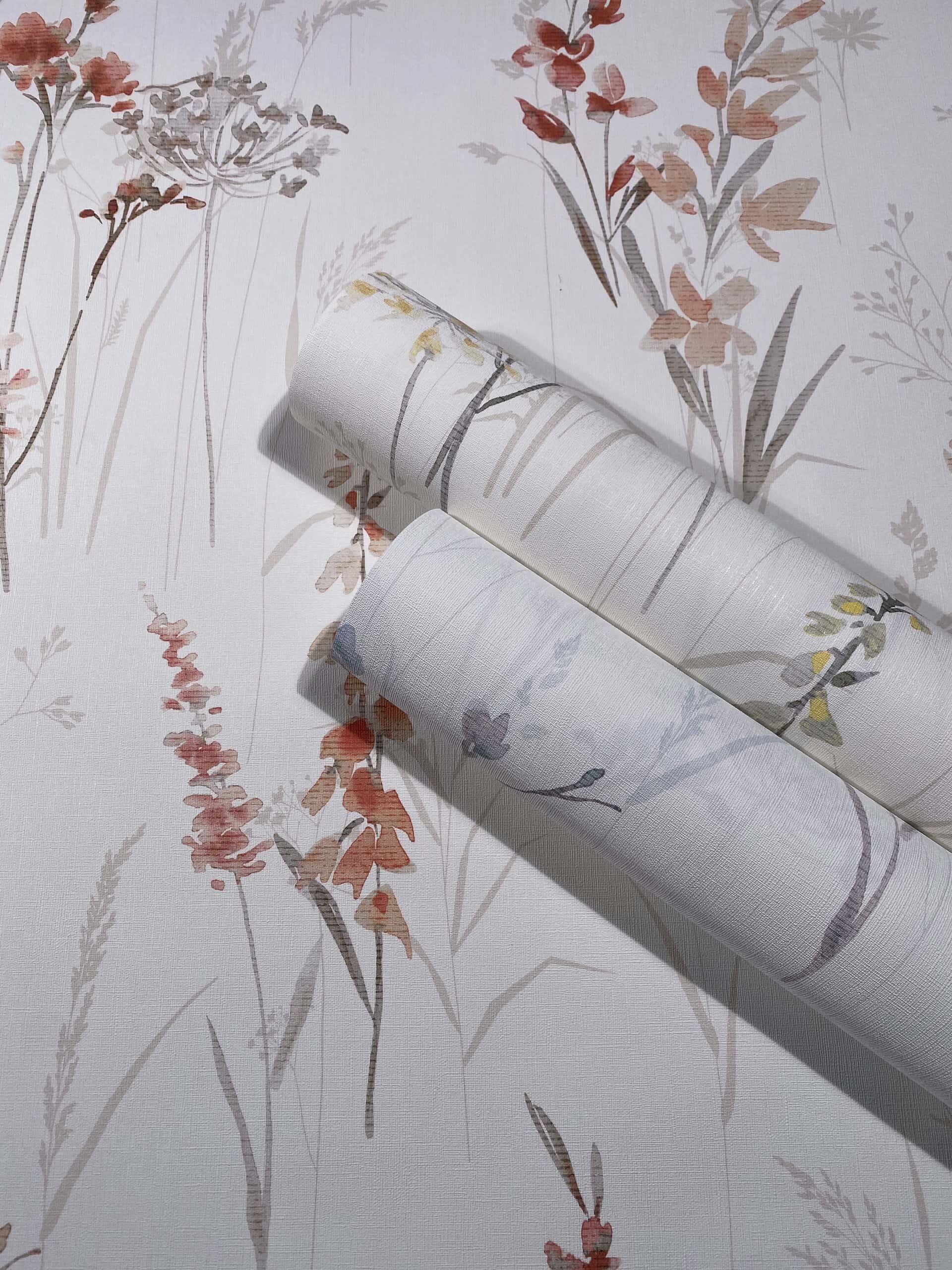 Zart gezeichnete Wildblumen und Gräser, luftig arrangiert: Die lockere Anordnung strahlt angenehme Gelassenheit aus. Das feine Motiv bringt eine sanfte Natürlichkeit ins Interieur.