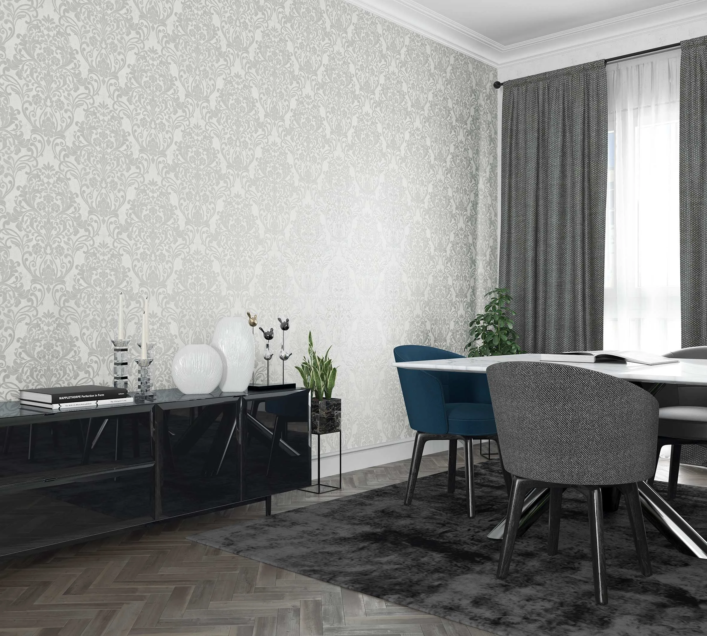 The wallpapers from the CityGlam collection are casual yet careless, glamorous and striking. The design of most wallpapers in the collection reflects concrete surfaces, including the characteristic signs of real concrete weathering, which are present in carefully measured amounts on the wallpaper. However, unlike real concrete, “wallpaper concrete” shines because of these small scratches and other inherent defects of concrete surfaces.