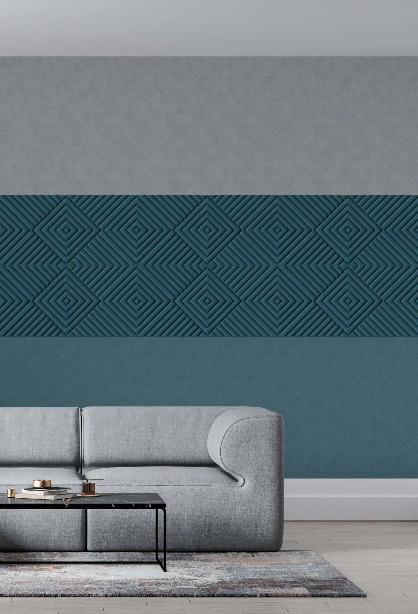 Discover our latest products that correspond to the “land of illusions” trend now! Our stripes – whether block, pin, or watercolor – and stucco elements are perfectly coordinated with this trend and are sure to inspire you. For each design, at least one matching plain color is suggested, so you can perfectly coordinate your wall design. Our products are developed to create a strong sense of three-dimensionality and break away from the rigid concept of “gluing panels together.” You have the freedom to use them exactly as you envision. The 53 cm width of our products is subtle, modern, and Graphic styled. Use them as a base, a full wall, or as horizontal or vertical panels. Our wide, classic border is ideal for wallpapering near the ceiling, while the narrow border works perfectly as a base trim. You can choose between two-tone (color blocking) or single-color designs. Our products give you endless creative freedom and are perfectly tailored to today’s interior design trends. Let your creativity flow and design your spaces just the way you like them!