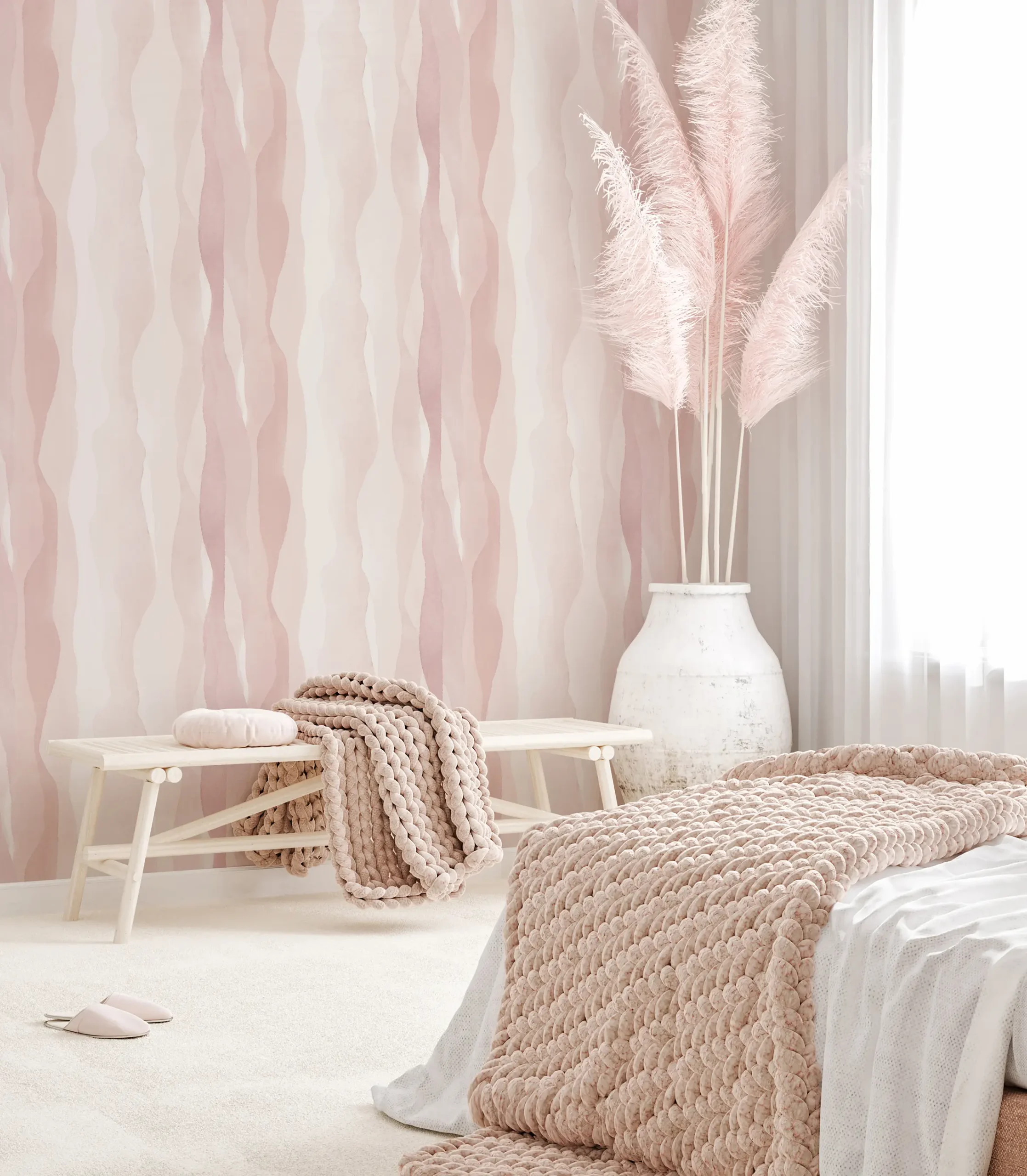 Only textiles and wallpaper give an ambience the perfect feel-good atmosphere and provide the finishing touch to the interior. This wallpaper also fits in here. Their timeless design and impressive feel enhance any room. With its color – a pleasant pink – you always make a statement. It’s not for nothing that wallpapers are considered a visual expression of personality.