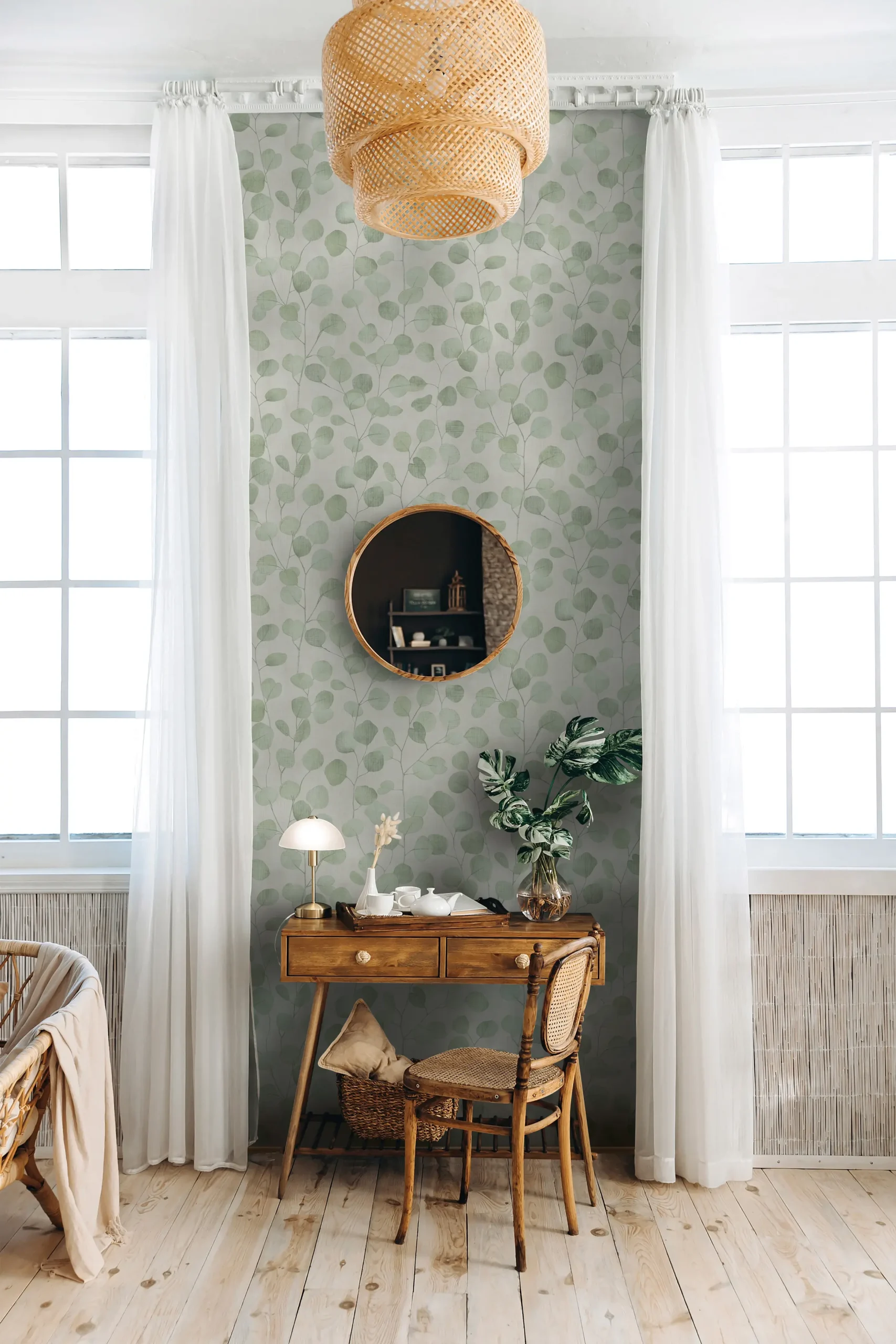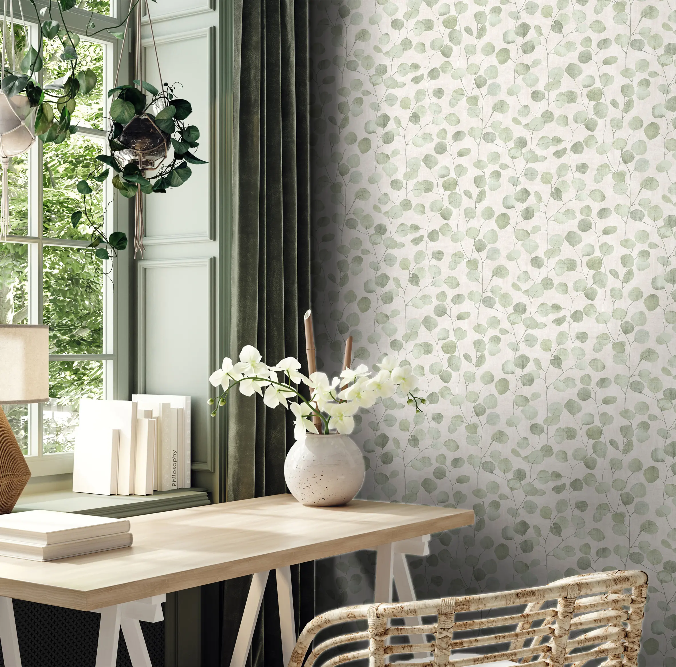 Only textiles and wallpaper give an ambience the perfect feel-good atmosphere and provide the finishing touch to the interior. This wallpaper also fits in here. Their timeless design and impressive feel enhance any room. With its color – a pleasant green – you always make a statement. It’s not for nothing that wallpapers are considered a visual expression of personality.
