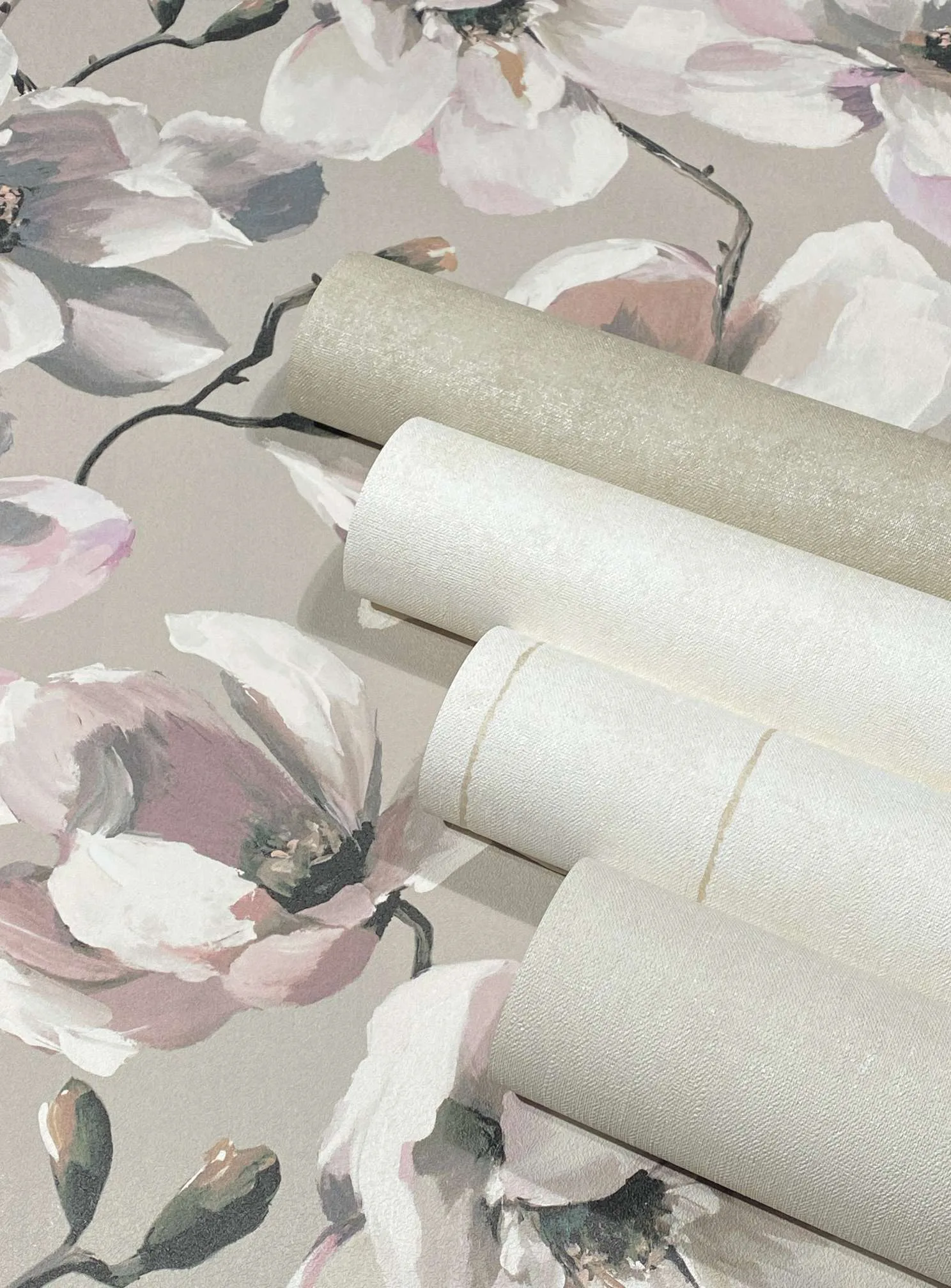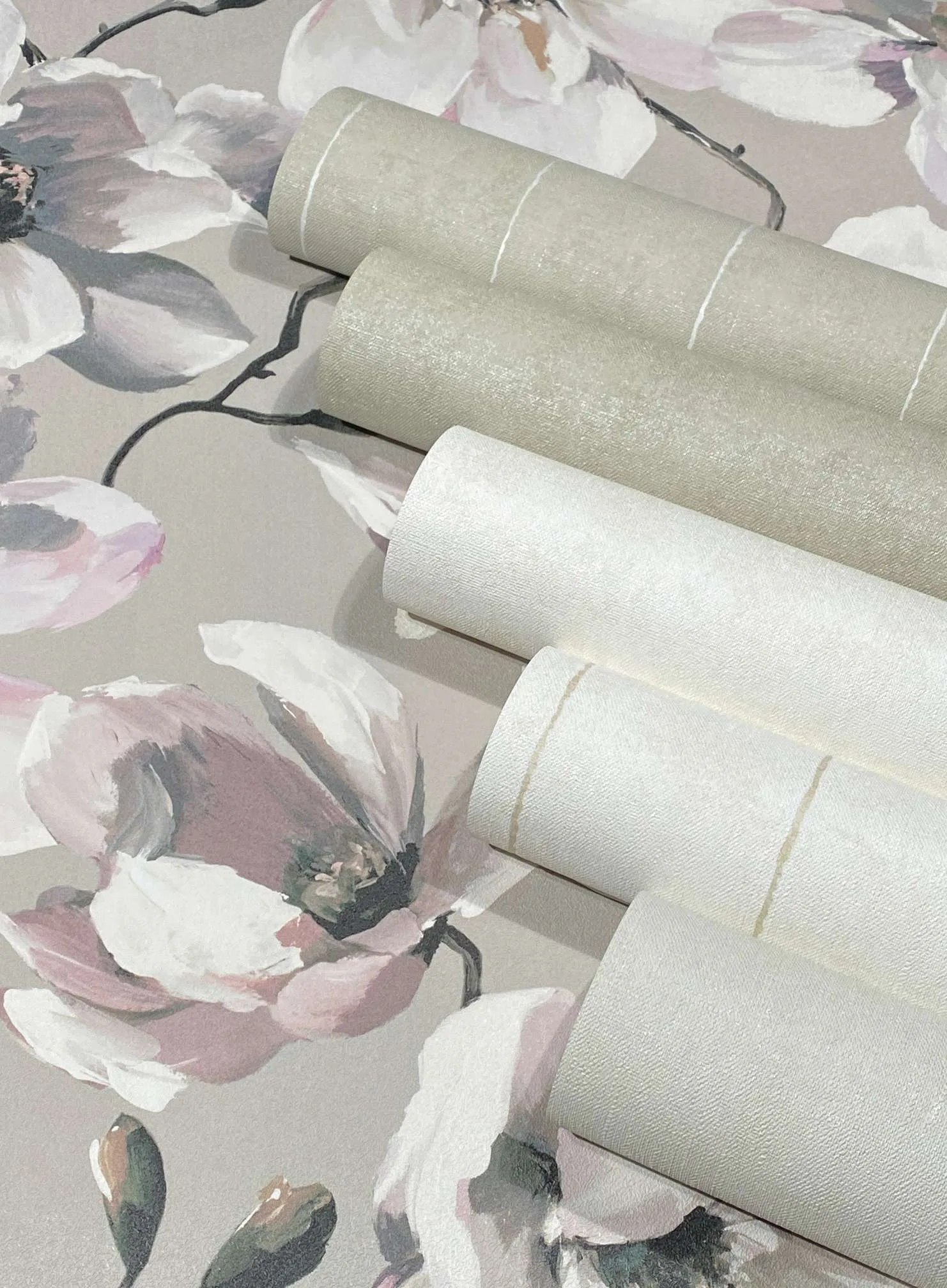 Con la ayuda de FLORA, la pared puede florecer todo el año en seis estilos. Desde prados de montaña hasta jardines encantados, las inspiraciones aportan el poder fresco de las flores al ambiente. Una magnolia naturalista en tonos empolvados irradia una delicada frescura primaveral, delfinios realizados en técnica de acuarela crean una atmósfera romántica y un bodegón de madreselvas y lilas parece haber subido al papel pintado directamente desde un jardín inglés.